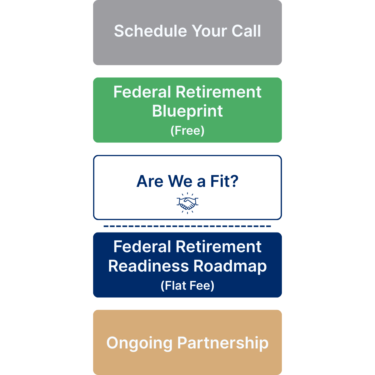 - We start with your Federal Retirement Blueprint (complimentary). One conversation to understand your benefits, savings, and goals, and to see whether there’s a real decision to be made around retirement.